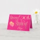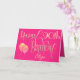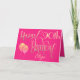 Elegant decorative lettering in gold is on a hot pink backdrop to wish a Happy 90th birthday. Happy Birthday is set in an ornate script, and the age is in a cordinating typeface with name in script at the bottom. Easily personalize the name and words inside to your own greeting if you wish. Faux sparkly balloons add razzle dazzle on the front! The same color hot pink background continues on the inside.