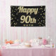 Happy 90th Gold Bling Typography Confetti Black Banner