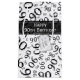 This over-the-hill numeric design is a black and white random number pattern with milestone number 90 repeated in varied sizes and angles in an all-over print. There is a printed ribbon banner and gift tag with text templates so you can easily personalize them with your own words, name, initial, or monogram.