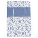 This over-the-hill numeric design is a blue and white random number pattern with milestone number 90 repeated in varied sizes and angles in an all-over print. There is a printed ribbon banner and gift tag with text templates so you can easily personalize them with your own words, name, initial, or monogram.