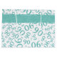 This over-the-hill numeric design is a teal and white random number pattern with milestone number 90 repeated in varied sizes and angles in an all-over print. There is a printed ribbon banner and gift tag with text templates so you can easily personalize them with your own words, name, initial, or monogram.