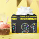 This fun birthday-themed wrapping paper design features a large number "91" filled with a pattern of decorative star shapes having various colours and sizes, along with the message "Happy 91st Birthday,", and a personalized name. The background is coloured black. Fun wrapping paper like this might be used when wrapping presents being given to somebody in celebration of their 91st birthday. [~Z0000429]