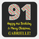 Happy 91st Birthday & Merry Christmas, Custom Name Square Sticker
