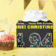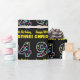 This fun birthday-themed wrapping paper design features a large number "94" filled with a pattern of star shapes of various sizes and colours, along with the message "Happy 94th Birthday,", and a customizable name. The background is coloured black. Birthday themed wrapping paper like this might be used when giving a gift or present in celebration of somebody’s ninety fourth birthday. [~Z0000429]