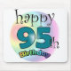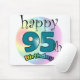 Gelukkige 95ste verjaardag muismat Leuk als cadeau voor iemand die vijfennegentig is geworden. Regenboog kleuren. 95 is in de blauwe kleur.