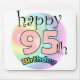 Gelukkige 95ste verjaardag muismat Leuk als cadeau voor iemand die vijfennegentig is geworden. Regenboog kleuren. 95 is in de roze kleur.