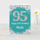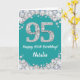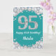 Happy 95th Birthday Teal Turquoise Aqua and Silver Glitter Card with personalized name. For further customization, please click the "Customize it" button and use our design tool to modify this template.