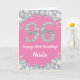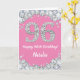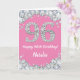 Happy 96th Birthday Pink and Silver Glitter Card with personalized name. For further customization, please click the "Customize it" button and use our design tool to modify this template.