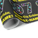 This fun birthday themed wrapping paper design features a large number "97", filled with a pattern of star shapes of various colours and sizes. It also features the message "Happy 97th Birthday,", and a customizable name. The background is coloured black. Birthday themed wrapping paper like this might be a fun way to wrap a gift or present being given to somebody who is celebrating their 97th birthday. [~Z0000429]