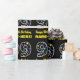 This fun birthday themed wrapping paper design features a large number "99", filled with a pattern of decorative star shapes of various sizes and colours. It also features the message "Happy 99th Birthday,", and an editable name. The background is coloured black. Birthday themed wrapping paper like this might be used when giving a gift or present in celebration of somebody’s ninety ninth birthday. [~Z0000429]