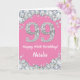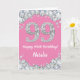 Happy 99th Birthday Pink and Silver Glitter Card with personalized name. For further customization, please click the "Customize it" button and use our design tool to modify this template.