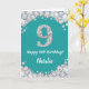 Happy 9th Birthday Teal Turquoise Aqua and Silver Glitter Card with personalized name. For further customization, please click the "Customize it" button and use our design tool to modify this template.
