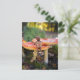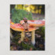 A cheerful Acorn Elf sits happily on a bright red toadstool, holding a tiny wrapped gift and ready to celebrate. This charming woodland postcard brings a touch of forest magic and playful imagination to any special day.