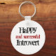 A white keychain with "Happy and successful Introvert" written on it for a positive statement.