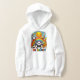 A delightful Hoodie featuring a rainbow arching across the sky, with adorable animals—pandas, giraffes, and penguins—peeking out from behind the colourful stripes. The sun is shining brightly, and the text reads, “Be Happy.”