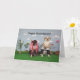 Photo of 2 dogs, one in cheerleader outfit, one as football player. The outside says "Happy Anniversary" and the inside message says "You 2 make a great team."