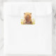 This adorable capybara sticker features a cheerful capybara sitting in a lush meadow, surrounded by delicate yellow wildflowers. The capybara's eyes are closed, and it has a blissful smile, radiating pure joy and relaxation. Its little front teeth add a touch of charm, while soft watercolor brushstrokes enhance the warm, whimsical feel of the illustration. The gentle hues of green and gold create a cozy and peaceful atmosphere, making this design perfect for capybara lovers, nature enthusiasts, and those who appreciate cute and uplifting imagery.