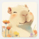 This adorable capybara sticker features a joyful capybara with blushing cheeks, peacefully surrounded by a colourful meadow filled with vibrant wildflowers. With its eyes closed and a gentle smile, the capybara radiates warmth, happiness, and relaxation. The soft painterly strokes and warm pastel tones create a dreamy and whimsical atmosphere, enhancing the serene and cozy feel of the design. The mix of orange, yellow, blue, and purple flowers adds to the cheerful and nature-inspired aesthetic, making this sticker perfect for capybara lovers, animal enthusiasts, and those who enjoy uplifting and charming designs.