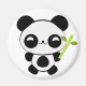 A happy baby panda magnet. A cuddly little panda cub holding a cute stick of green bamboo. A fun gift for baby showers, panda lovers, and fans of adorable animal kawaii.