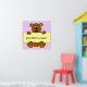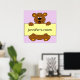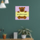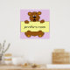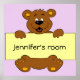 This happy teddy bear cartoon is holding a banner in which you can write your personal message or your name.