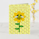 This awesome Foil card features a graphic image of a cute yellow bumblebee with black stripes, eyes, antennae and legs. It has pretty blue and white wings. The bee is sitting on the middle of a golden yellow sunflower. The flower has a green stalk and three leaves. The message "happy bee day" appears spread over the three leaves. The background is composed of a yellow honeycomb pattern. There is custom text on the inside the card so you can personalize this card. The greeting on the front is in beautiful gold foil.