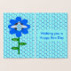 This awesome foil Birthday card features a graphic image of a cute blue bumblebee with bright blue stripes, black eyes, blue antennae and black legs. It has pretty blue and white wings. The bee is sitting on the middle of a pretty blue sunflower. The flower has a green stalk and three leaves. The message "Bee Day boy" appears spread over the three leaves. The background is composed of a pale blue honeycomb pattern.