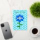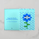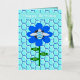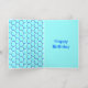 This awesome Foil card features a graphic image of a cute blue bumblebee with bright blue stripes, black eyes, blue antennae and black legs. It has pretty blue and white wings. The bee is sitting on the middle of a pretty blue sunflower. The flower has a green stalk and three leaves. The message "Bee Day boy" appears spread over the three leaves. The background is composed of a pale blue honeycomb pattern. There is custom text on the inside the card so you can personalize this card. The greeting on the front is in beautiful silver foil.