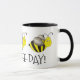 Mug features an original marker illustration of a black-and-yellow bumblebee, with HAPPY BEE-DAY in a fun font. Perfect for birthday celebrations!