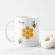 Happy bees and honeycomb Mug. Happy calligraphy can be personalized.