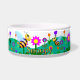 This ceramic pet bowl is decorated with cute bees forageing in colourful flowers on hills.