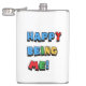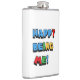 Flask white with large bright Primary colour letters. "Happy Being Me" Personalize by adding a Name.