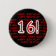Black, red, and white Happy 16th Birthday design on 16th birthday T-shirts, cards, mugs, buttons, and other 16th birthday items.