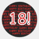 Black, red, and white Happy 18th Birthday design on 18th birthday T-shirts, cards, mugs, buttons, and other 18th birthday items.