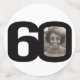 60th birthday black and white graphic stripe and text party confetti. Great to add a personal touch to a surprise birthday party. Personalize with three of your birthday boys or girls photos in the 0 of 60 and personalize with your choice of name. Design by Sarah Trett for www.mylittleeden.com