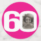 60th birthday bright hot pink and white graphic stripe and text party confetti. Great to add a personal touch to a surprise birthday party. Personalize with three of your birthday boys or girls photos in the 0 of 60 and personalize with your choice of name. Design by Sarah Trett for www.mylittleeden.com