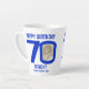 70th birthday two photos in the 0 of 70 mug. Great to add a personal touch to a surprise birthday party. Personalize with your birthday boys photo in the 0 of 70 and personalize with your choice of name. Other matching items are available. Designed by Sarah Trett for www.mylittleeden.com
