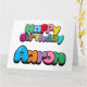 Colourful "Happy Birthday Aaron" bubblegum style text.