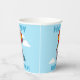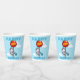 Use "Personalize this template" to change the age or "HAPPY BIRTHDAY!" text, text changes are reflected on both sides. Brighten up a birthday party with these paper cups featuring a cute opossom in a striped party hat, floating by on a big red balloon while blowing a star spangled party blower.