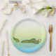 A happy alligator just lolling in the water. Background is a soft blue at bottom changing to a light green in the middle and white at top. Some items have text you can change to whatever you'd like - or delete it altogether