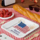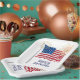 American flag with "Happy Birthday" text and gold fireworks on white.