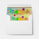 This birthday sign or banner is designed with "Happy Birthday" in different colours. Stars in purple, red, gold and multi colours, and a bright yellow sun with rays are used as a backdrop. This is an invitation RSVP envelope that matches the invitation and RSVP card "Happy Birthday and Stars". On the back is the banner with a rainbow coloured backround added along with a brown border. This envelope can be customized with all your own information.