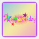 This birthday sign or banner is designed with "Happy Birthday" in a rose colour. Stars in purple, red, blue and multi colours, and a bright yellow sun with rays are used as a backdrop. A rainbow coloured backround and purple border were added. These stickers are available in assorted shapes and sizes. Also matches birthday invitations.