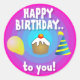 Happy Birthday Balloon, Cake & Cap Classic Round Sticker