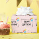 3D frame with Happy Birthday text and party balloons on a blush pink background.