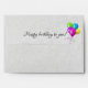 soft light grey creased texture background with happy birthday greetings and party balloons