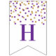 Happy Birthday banner with purple and gold confetti pattern.
