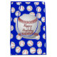 A Cute Blue, White and Red Medium Size Happy Birthday Gift Bag Done In A Baseballs