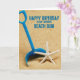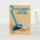 A blue shovel and a single starfish on a smooth sandy beach - a fun way to say Happy Birthday to your favourite beach bum! Totally customizable for you to personalize as you please!
