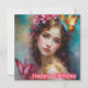 A birthday card for a beautiful young woman. The greetings on the card are "Happy Birthday". On the back of the card is a small version of the front picture, and plenty of room to write a message. Made with the assistance of AI Bing.