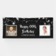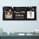 Celebrate any age birthday with this black and silver star banner sign featuring HAPPY # BIRTHDAY in a modern, hand lettered brush script font and personalized with two photos and their name or other custom text. Consider using Then and Now photos. PHOTO TIP: For fastest/best results, choose a photo with the subject in the middle and/or pre-crop it to a square shape BEFORE uploading and use the CHANGE tab in the PERSONALIZE section. CHANGES: Change the background colour, choose a styled graphics background or change the personalized text font style, colour, size and placement by clicking on CUSTOMIZE FURTHER under the PERSONALIZE section. Contact the designer via Zazzle Chat or makeitaboutyoustore@gmail.com if you'd like this design modified, on another product or would like coordinating items.